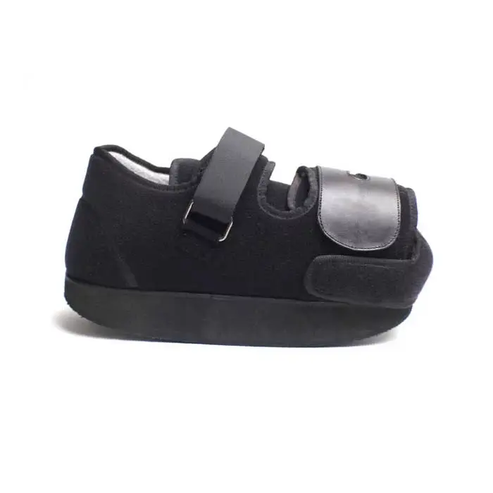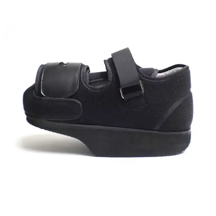 Post-operative shoes gives enough room to wear with the presence of bandages. Sole design that reduces forefoot weight bearing.